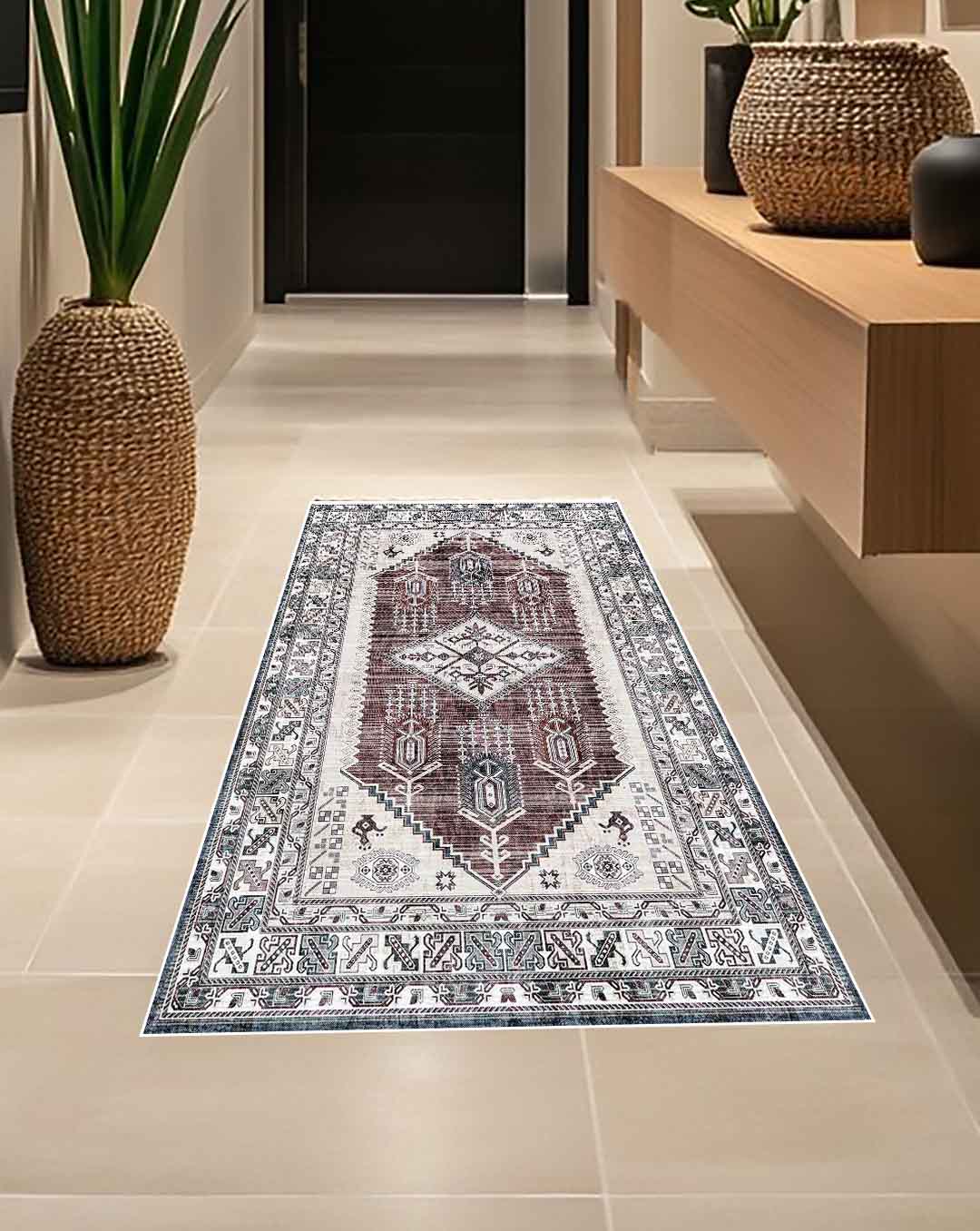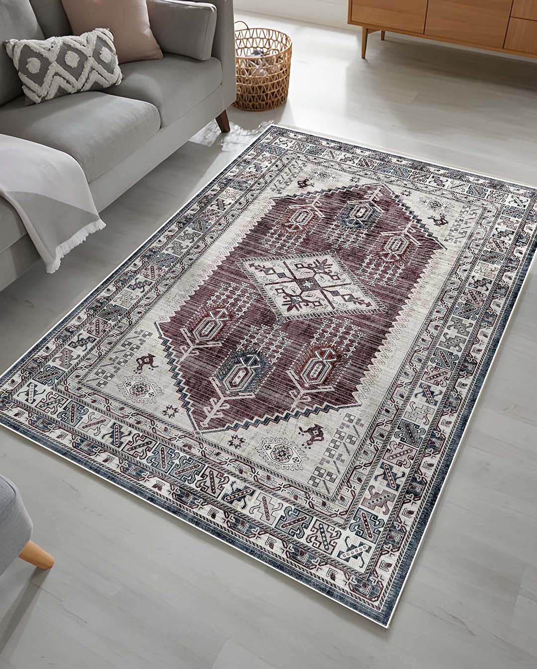 Dark red is a vintage persian new style carpet has light Beige carpet background and mixture of floral and classic curves in the most trending and modern colours mixtures that can unfortunately change area mode and style ,it's the best choice for livingroom carpet , bedroom runners and bedroom carpet and door mat. Easy cleaning make it beats all other carpets as it's washable carpet , Enjoy softness touch with the best colours and anti-slip back would make it the best choice ever for high and medium-traffic zones, kid and pet-friendly carpet and homes.