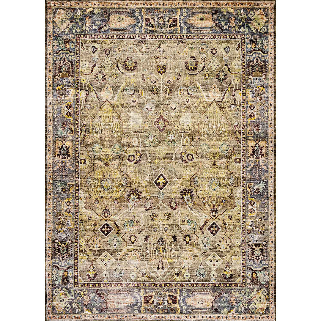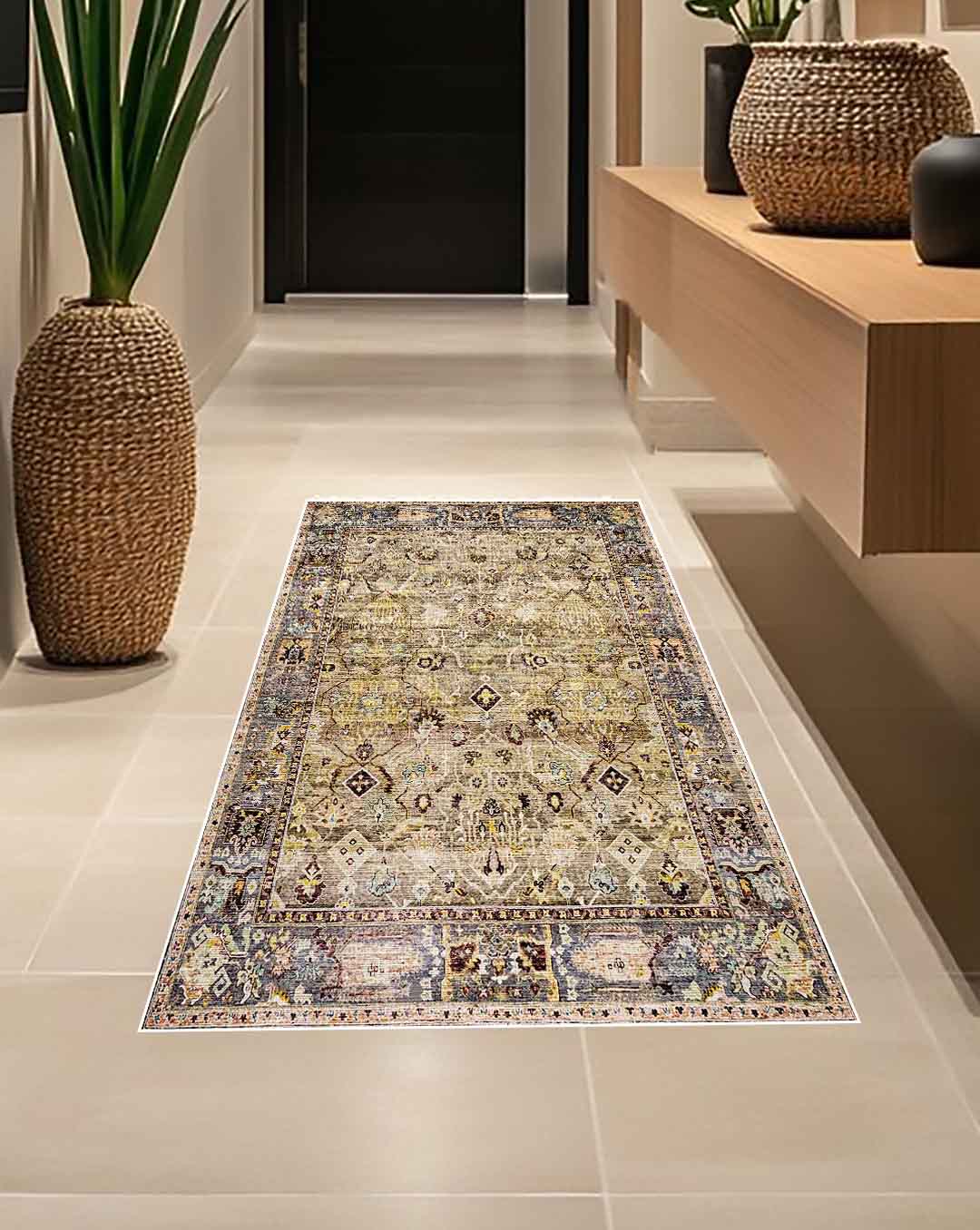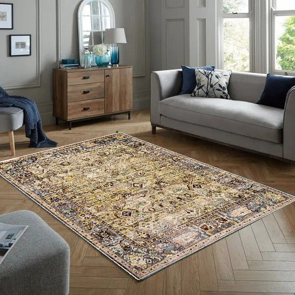 Yousr is a vintage persian new style carpet has light gold carpet background and mixture of classic curves in the most trending and modern colours mixtures that can unfortunately change area mode and style ,it's the best choice for livingroom carpet , bedroom runners and bedroom carpet and door mat. Easy cleaning make it beats all other carpets as it's washable carpet , Enjoy softness touch with the best colours and anti-slip back would make it the best choice ever for high and medium-traffic zones, kid and pet-friendly carpet and homes.